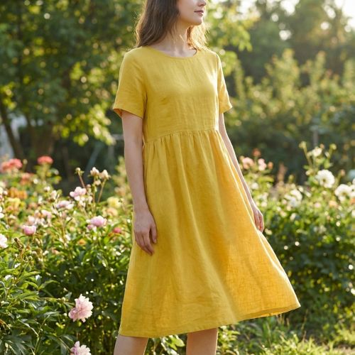 Cotton fabric with linen yellow