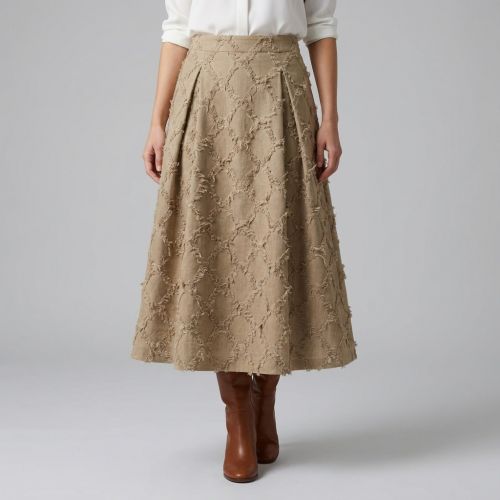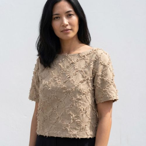 Cotton fabric with linen Vintage Fringe Diamonds naturals