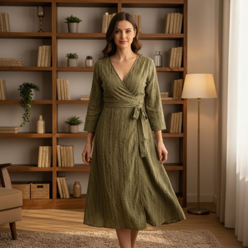 Cotton fabric with linen Vintage Fringe Diamonds army