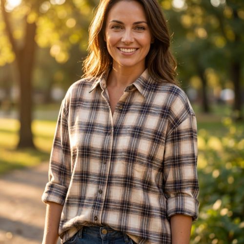 Cotton fabric YARN DYED BRUSHED Check Tim beige