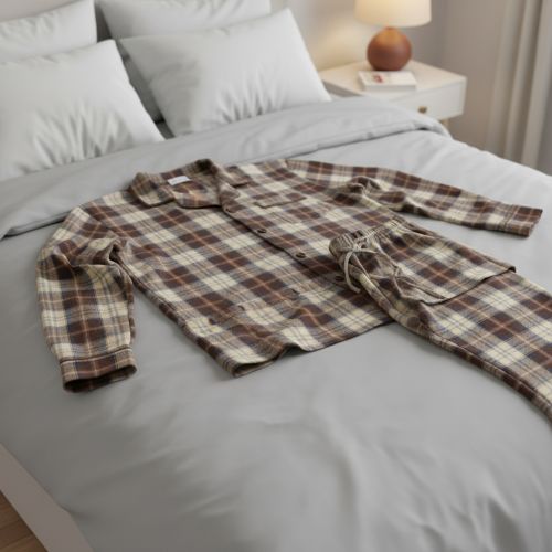 Cotton fabric YARN DYED CHECK BRUSHED brown
