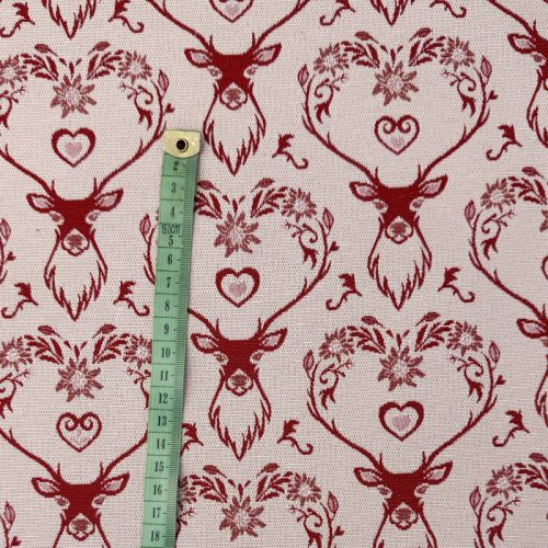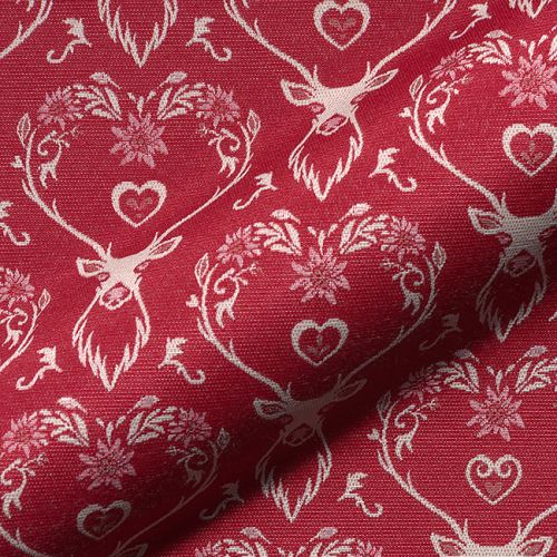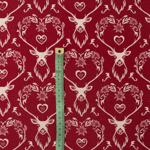Decoration fabric jacquard DOUBLE FACE Landhaus Deer Heart dark red