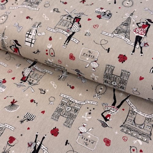 Decoration fabric Linenlook Cute Paris multico