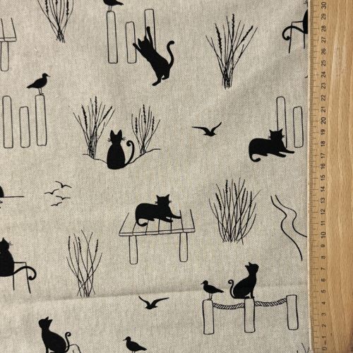 Decoration fabric Linenlook premium Cat Sea Life
