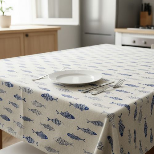 Decoration fabric Linenlook premium Fish Swimming School