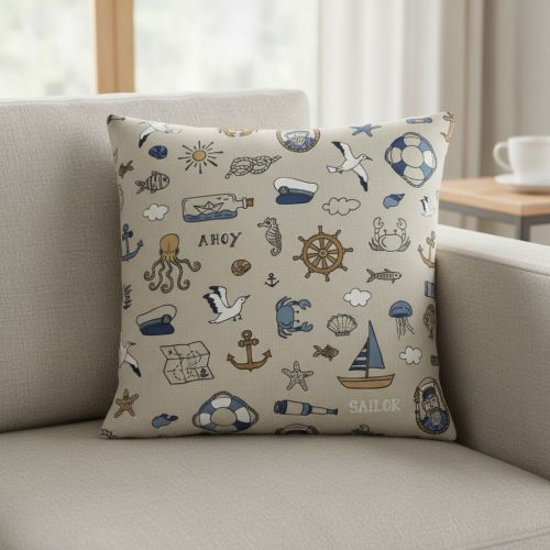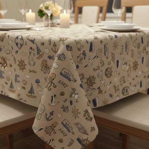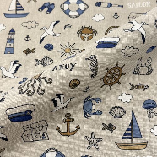 Decoration fabric Linenlook premium Nautical Doodle