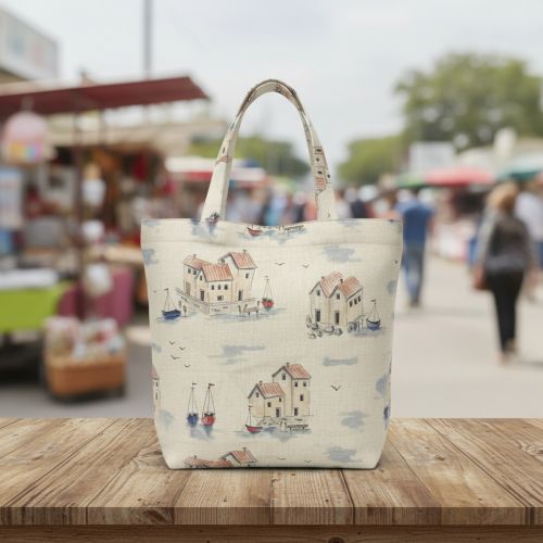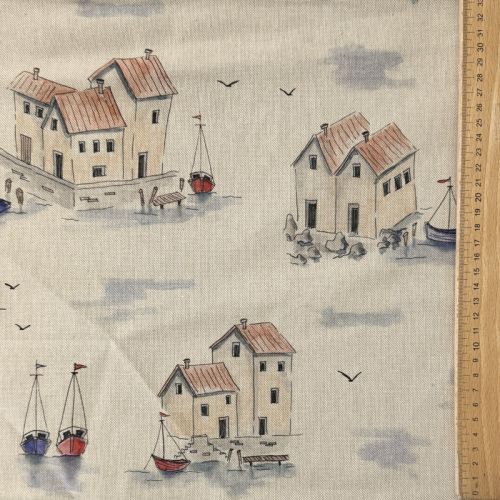 Decoration fabric Linenlook Seaside House View digital print