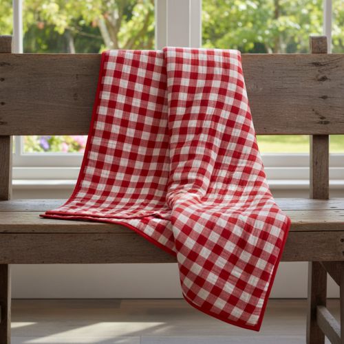 Double gauze/muslin Double sided CHECKS MINI red