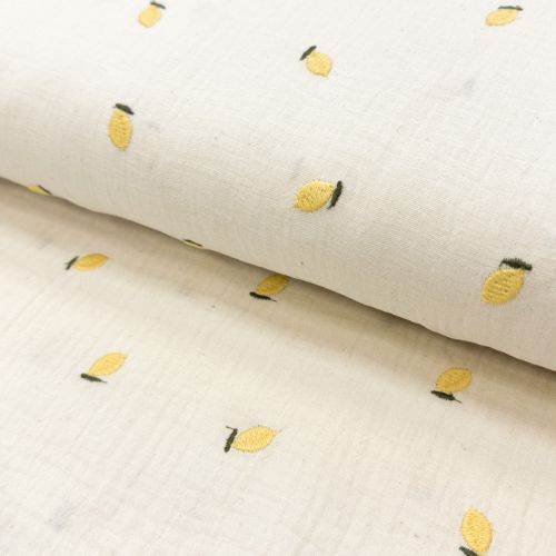 Double gauze/muslin EMBROIDERY Fruit natural yellow