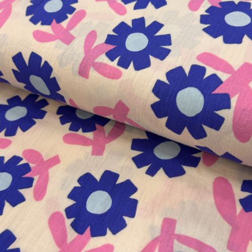 Double gauze/muslin Flowers natural/pink by JENNIFER BOURON ORGANIC