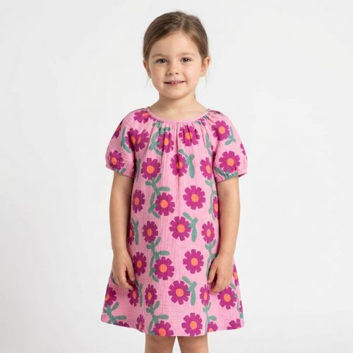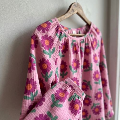 Double gauze/muslin Flowers pink by JENNIFER BOURON ORGANIC