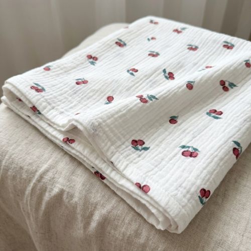 Double gauze/muslin Fruits cherry ORGANIC