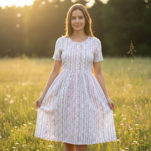 Double gauze/muslin Leaves in stripes digital print ORGANIC