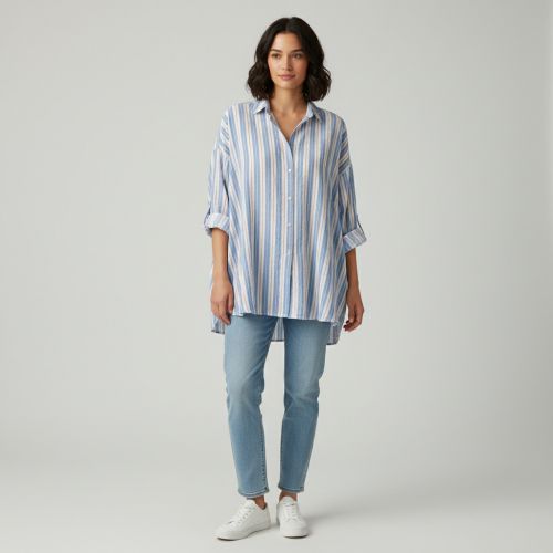Double gauze/muslin YARN DYED Line blue
