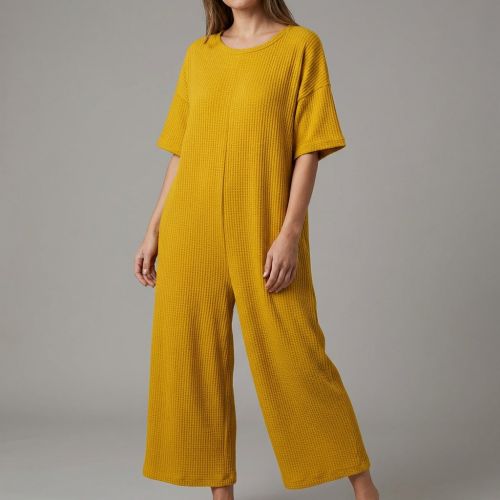 Knit fabrics WAFFLE BIG KNIT ochre