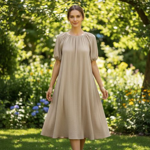 Linen viscose CRINCLE sand