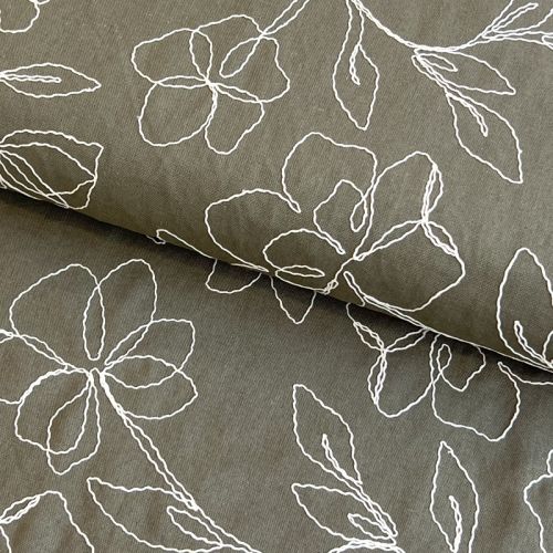 Linen viscose EMBROIDERY Flower Danielle pickle