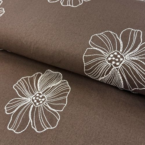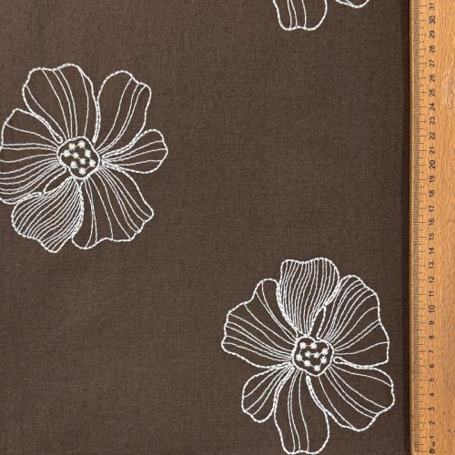 Linen viscose EMBROIDERY Flower Maya brown