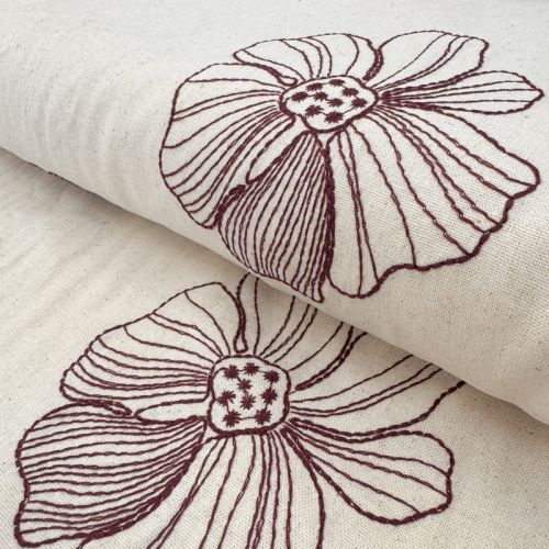 Linen viscose EMBROIDERY Flower Maya natural