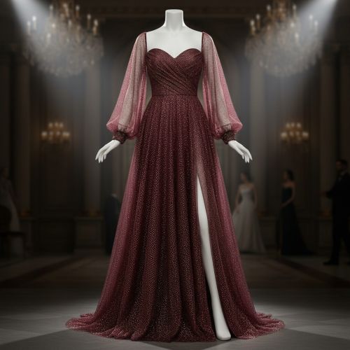 Tulle netting ROYAL SPARKLE dark lilac gold