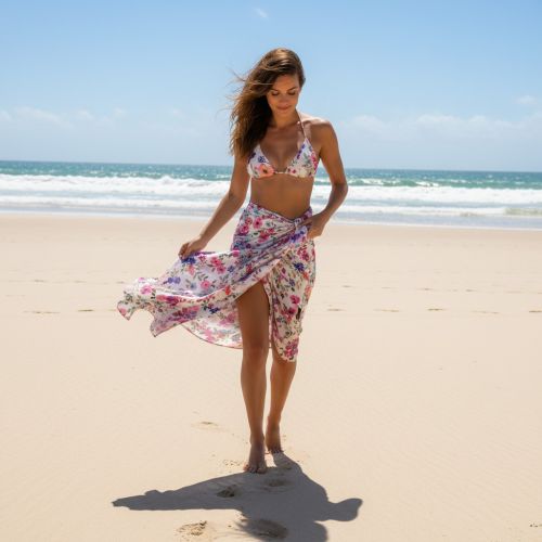 Viscose LUREX Tossed flowers white digital print