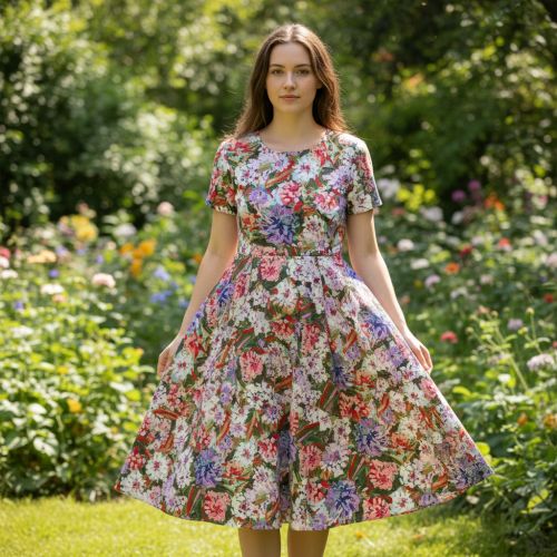 Viscose SATIN Old fashion flowers digital print