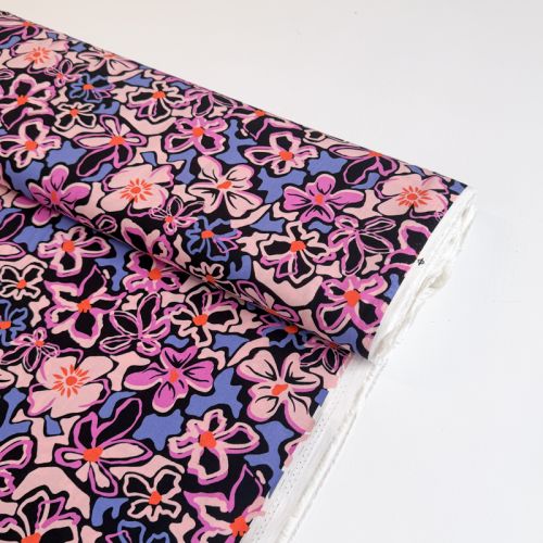 Viscose STRETCH Flowers Junie purple